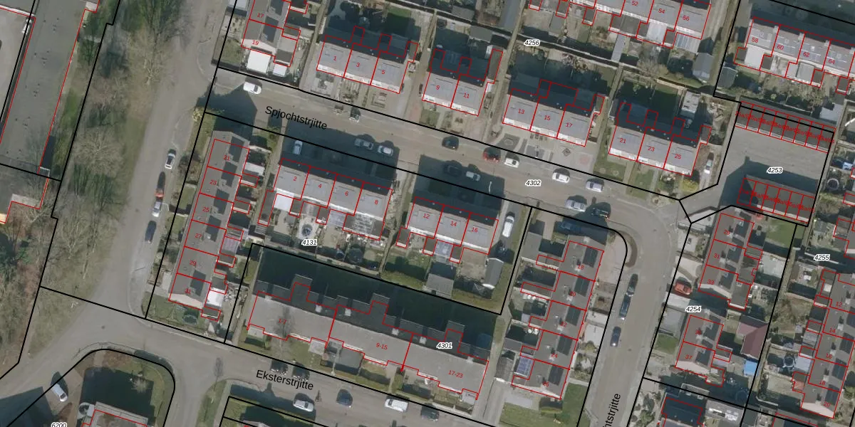 Het perceel waarop Spjochtstrjitte 12 staat heeft een oppervlakte van 2470 m². Dit is een zeer groot perceel. De perceeloppervlakte wordt geregistreerd door het Kadaster. Gedetailleerde informatie over de maten van dit perceel kunt u vinden in het rapport Kadastrale kaart met maatvoering van Spjochtstrjitte 12.