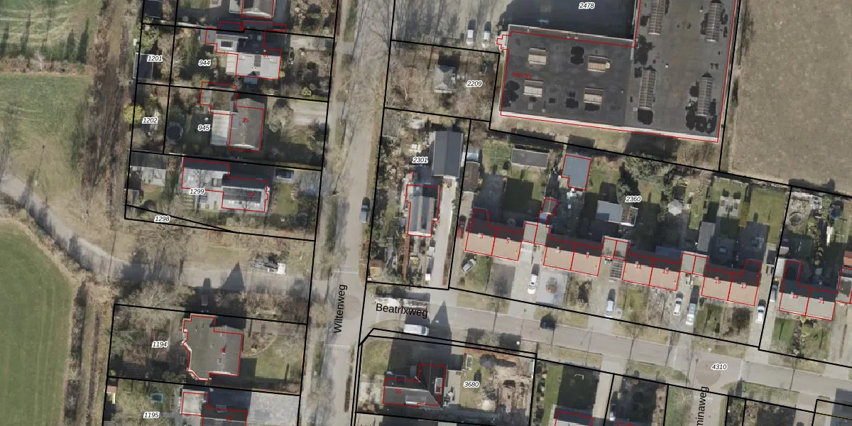 Gebruik de zoekbalk of klik op een perceel voor informatie over de adressen binnen dit perceel.