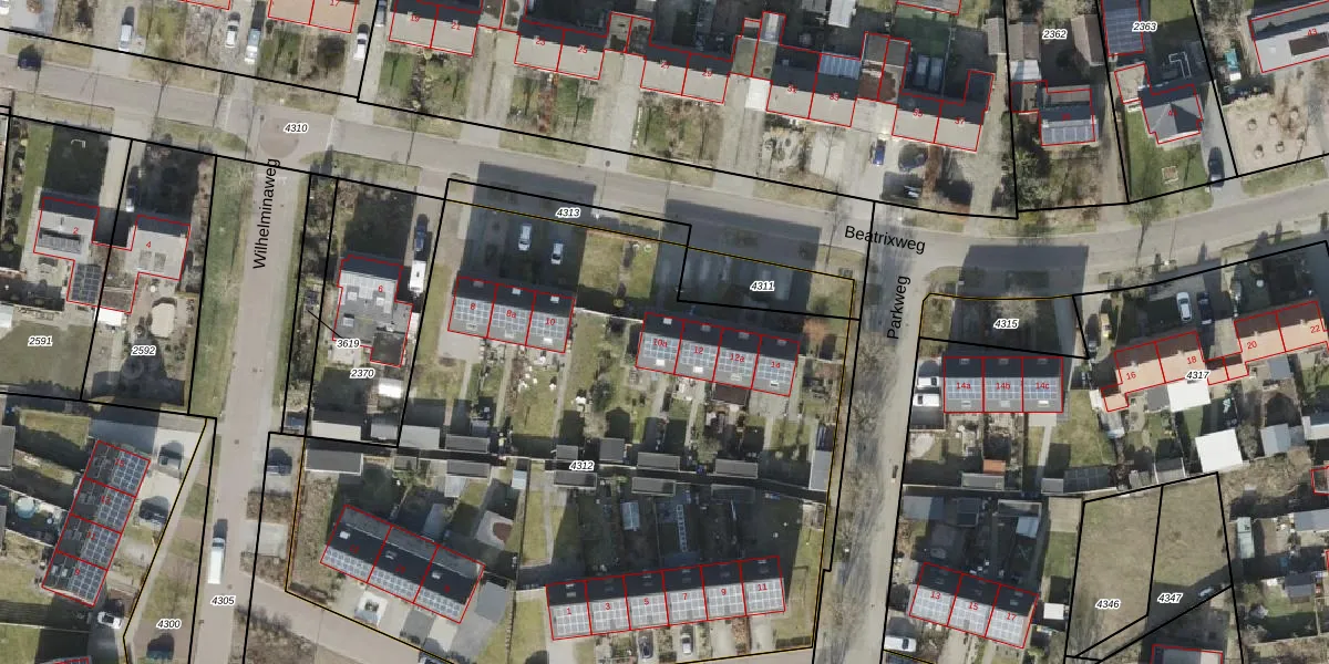 Beatrixweg 10-a is gelegen op kadastraal perceel WIJ03F4312. Deze kadastrale aanduiding is uniek en wordt gebruikt door het Kadaster om eigendomsrechten en andere zakelijke rechten vast te leggen. Het perceel maakt onderdeel uit van de kadastrale gemeente De Wijk.