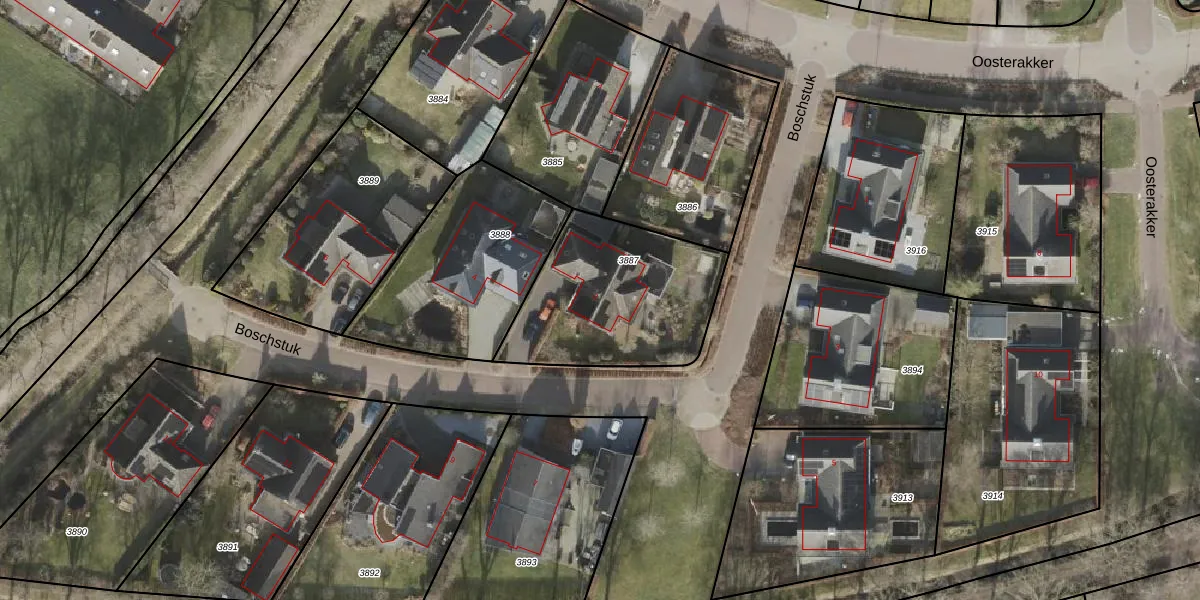 Gebruik de zoekbalk of klik op een perceel voor informatie over de adressen binnen dit perceel.