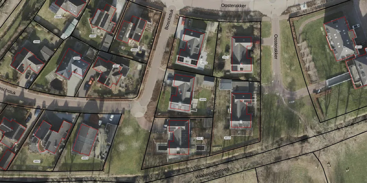 Het perceel waarop Boschstuk 3 staat heeft een oppervlakte van 736 m². Dit is een groot perceel. De perceeloppervlakte wordt geregistreerd door het Kadaster. Gedetailleerde informatie over de maten van dit perceel kunt u vinden in het rapport Kadastrale kaart met maatvoering van Boschstuk 3.