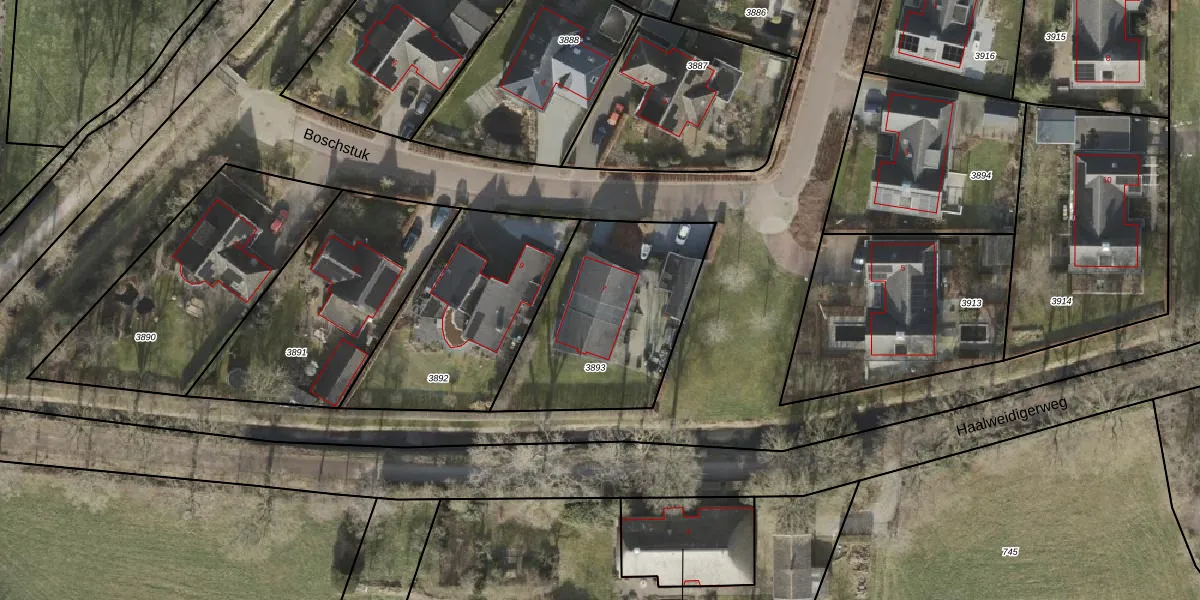 Het perceel waarop Boschstuk 7 staat heeft een oppervlakte van 779 m². Dit is een groot perceel. De perceeloppervlakte wordt geregistreerd door het Kadaster. Gedetailleerde informatie over de maten van dit perceel kunt u vinden in het rapport Kadastrale kaart met maatvoering van Boschstuk 7.