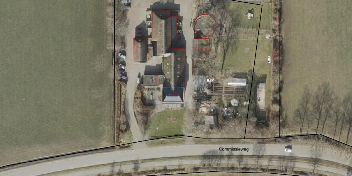 Het perceel waarop Commissieweg 25 staat heeft een oppervlakte van 6830 m². Dit is een zeer groot perceel. De perceeloppervlakte wordt geregistreerd door het Kadaster. Gedetailleerde informatie over de maten van dit perceel kunt u vinden in het rapport Kadastrale kaart met maatvoering van Commissieweg 25.