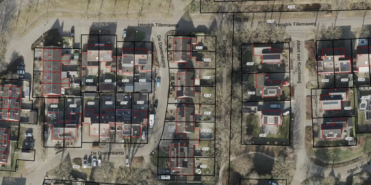 Het perceel waarop De Doelenkamp 7 staat heeft een oppervlakte van 240 m². Dit is een middelgroot perceel. De perceeloppervlakte wordt geregistreerd door het Kadaster. Gedetailleerde informatie over de maten van dit perceel kunt u vinden in het rapport Kadastrale kaart met maatvoering van De Doelenkamp 7.