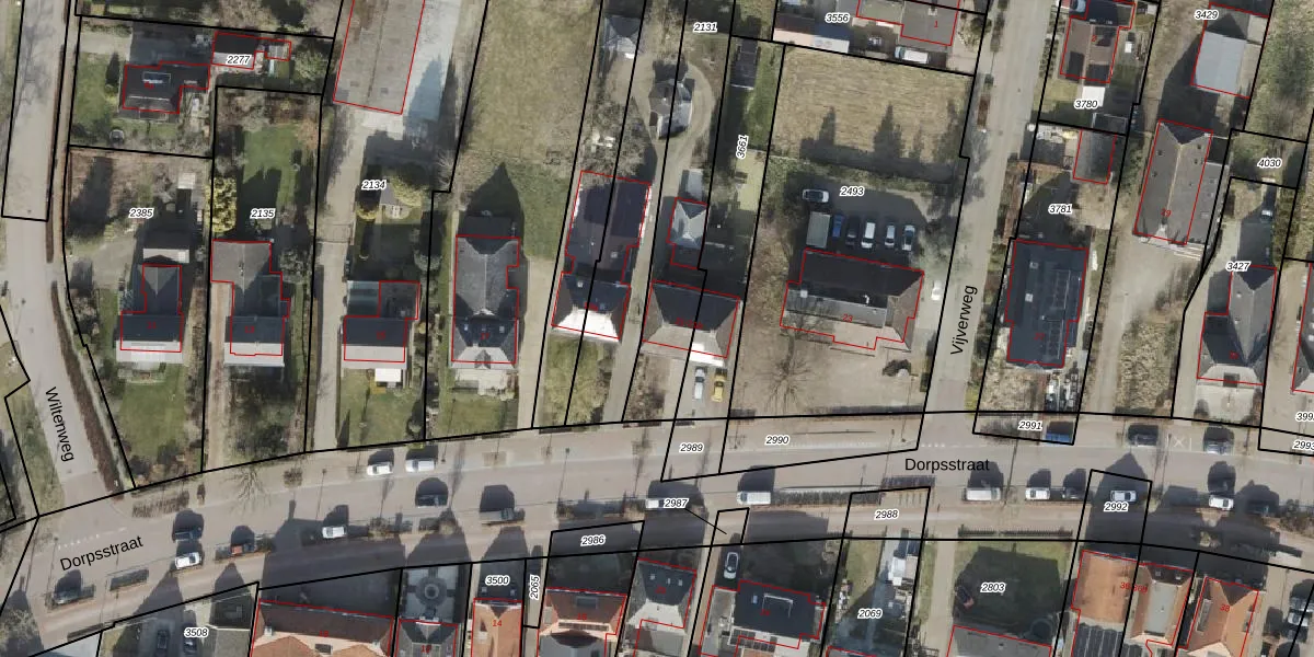 Het perceel waarop Dorpsstraat 21 staat heeft een oppervlakte van 810 m². Dit is een groot perceel. De perceeloppervlakte wordt geregistreerd door het Kadaster. Gedetailleerde informatie over de maten van dit perceel kunt u vinden in het rapport Kadastrale kaart met maatvoering van Dorpsstraat 21.