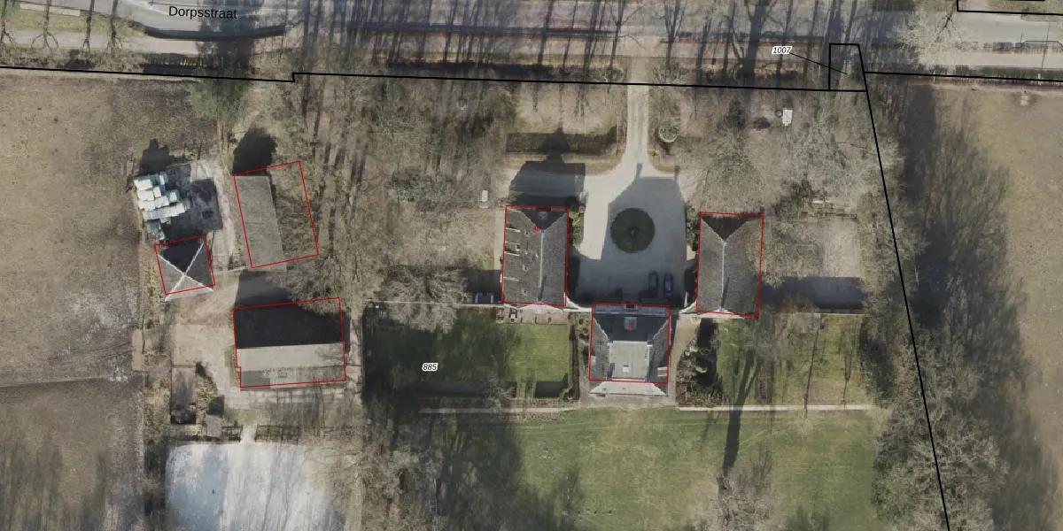 Het perceel waarop Dorpsstraat 4-a staat heeft een oppervlakte van 3,7 ha. Dit is een zeer groot perceel. De perceeloppervlakte wordt geregistreerd door het Kadaster. Gedetailleerde informatie over de maten van dit perceel kunt u vinden in het rapport Kadastrale kaart met maatvoering van Dorpsstraat 4-a.