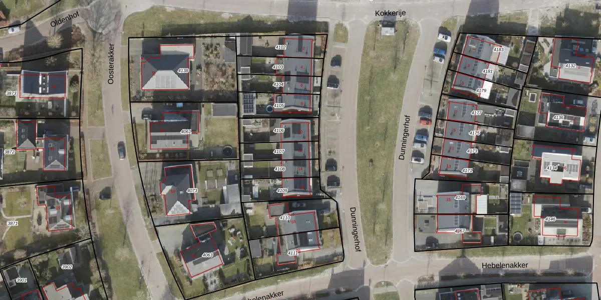 Het perceel waarop Dunningerhof 12 staat heeft een oppervlakte van 159 m². Dit is een middelgroot perceel. De perceeloppervlakte wordt geregistreerd door het Kadaster. Gedetailleerde informatie over de maten van dit perceel kunt u vinden in het rapport Kadastrale kaart met maatvoering van Dunningerhof 12.