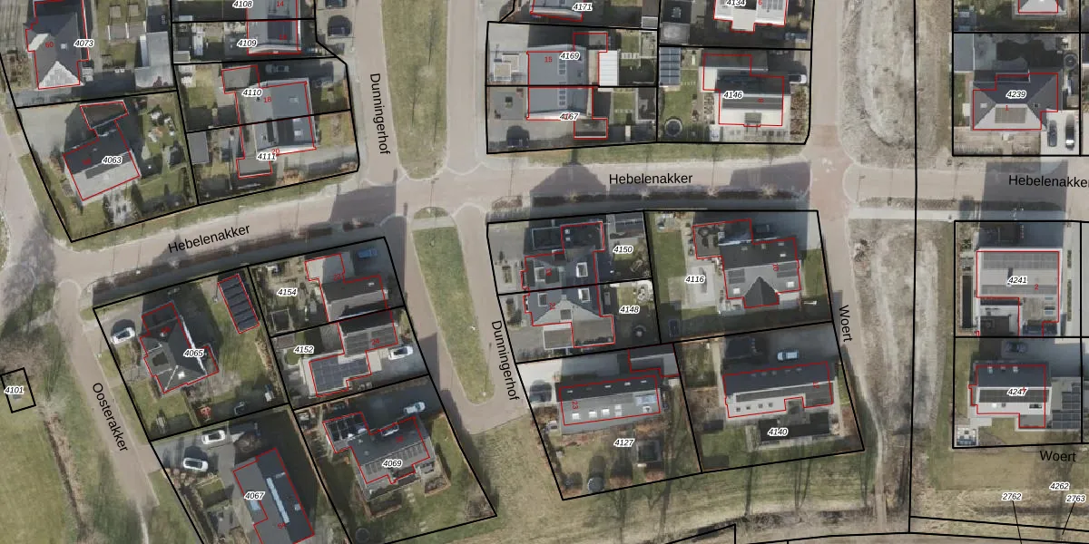 Het perceel waarop Dunningerhof 19 staat heeft een oppervlakte van 373 m². Dit is een groot perceel. De perceeloppervlakte wordt geregistreerd door het Kadaster. Gedetailleerde informatie over de maten van dit perceel kunt u vinden in het rapport Kadastrale kaart met maatvoering van Dunningerhof 19.