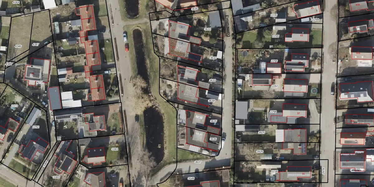 Het perceel waarop Emmaweg 8 staat heeft een oppervlakte van 375 m². Dit is een groot perceel. De perceeloppervlakte wordt geregistreerd door het Kadaster. Gedetailleerde informatie over de maten van dit perceel kunt u vinden in het rapport Kadastrale kaart met maatvoering van Emmaweg 8.