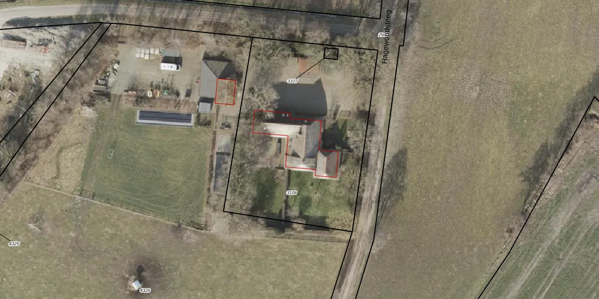 Hagewoudsteeg 1 is gelegen op kadastraal perceel WIJ03F3108. Deze kadastrale aanduiding is uniek en wordt gebruikt door het Kadaster om eigendomsrechten en andere zakelijke rechten vast te leggen. Het perceel maakt onderdeel uit van de kadastrale gemeente De Wijk.