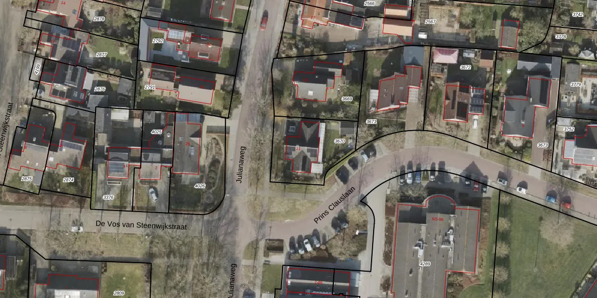 Julianaweg 21 is gelegen op kadastraal perceel WIJ03F3670. Deze kadastrale aanduiding is uniek en wordt gebruikt door het Kadaster om eigendomsrechten en andere zakelijke rechten vast te leggen. Het perceel maakt onderdeel uit van de kadastrale gemeente De Wijk.