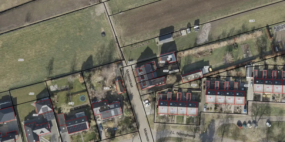 Het perceel waarop Molenstraat 48 staat heeft een oppervlakte van 261 m². Dit is een middelgroot perceel. De perceeloppervlakte wordt geregistreerd door het Kadaster. Gedetailleerde informatie over de maten van dit perceel kunt u vinden in het rapport Kadastrale kaart met maatvoering van Molenstraat 48.