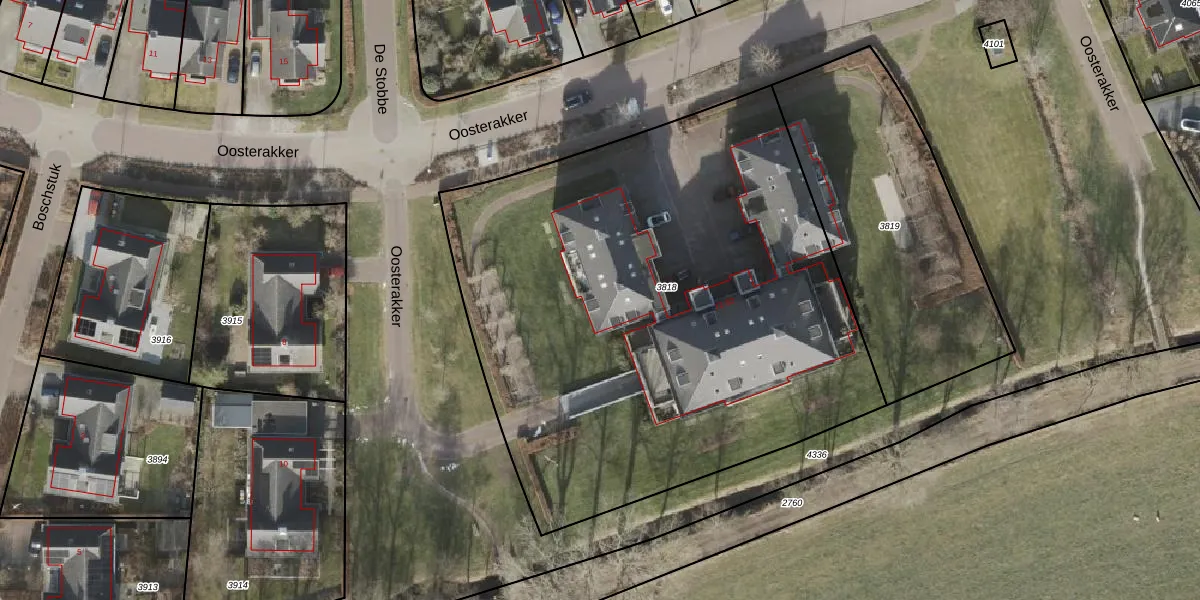 Het perceel waarop Oosterakker 14 staat heeft een oppervlakte van 3520 m². Dit is een zeer groot perceel. De perceeloppervlakte wordt geregistreerd door het Kadaster. Gedetailleerde informatie over de maten van dit perceel kunt u vinden in het rapport Kadastrale kaart met maatvoering van Oosterakker 14.