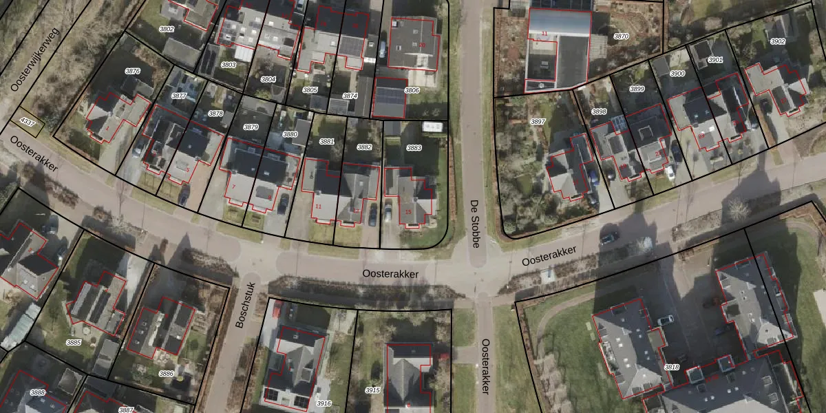 Het perceel waarop Oosterakker 15 staat heeft een oppervlakte van 492 m². Dit is een groot perceel. De perceeloppervlakte wordt geregistreerd door het Kadaster. Gedetailleerde informatie over de maten van dit perceel kunt u vinden in het rapport Kadastrale kaart met maatvoering van Oosterakker 15.