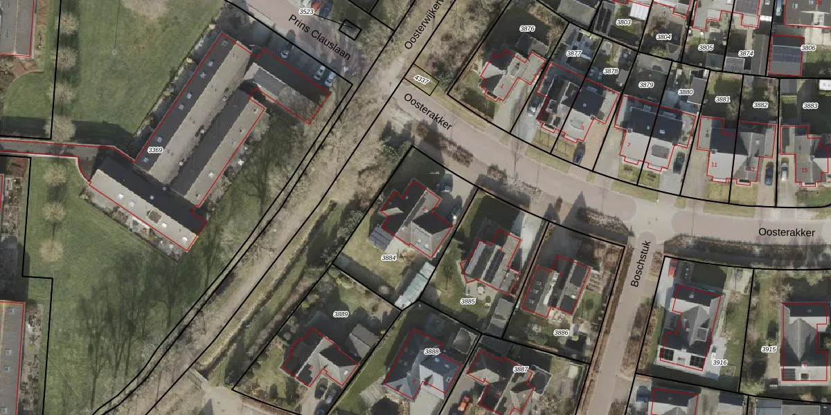 Oosterakker 2 is gelegen op kadastraal perceel WIJ03F3884. Deze kadastrale aanduiding is uniek en wordt gebruikt door het Kadaster om eigendomsrechten en andere zakelijke rechten vast te leggen. Het perceel maakt onderdeel uit van de kadastrale gemeente De Wijk.