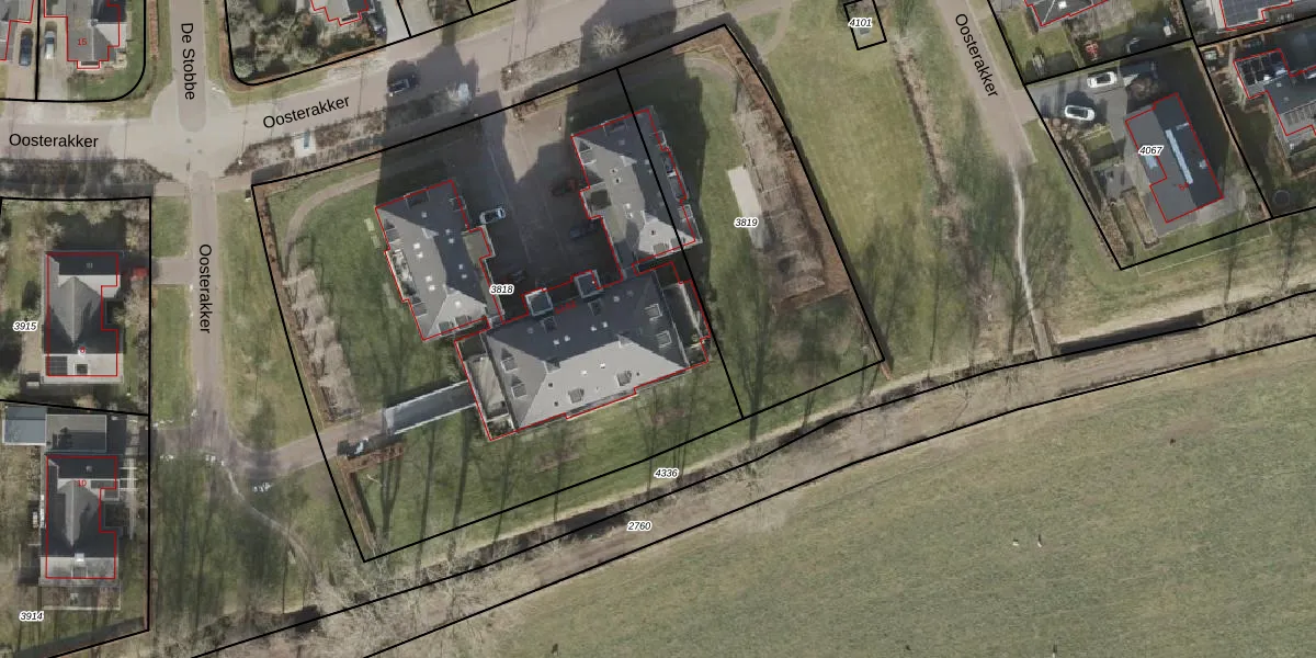 Het perceel waarop Oosterakker 34 staat heeft een oppervlakte van 3520 m². Dit is een zeer groot perceel. De perceeloppervlakte wordt geregistreerd door het Kadaster. Gedetailleerde informatie over de maten van dit perceel kunt u vinden in het rapport Kadastrale kaart met maatvoering van Oosterakker 34.