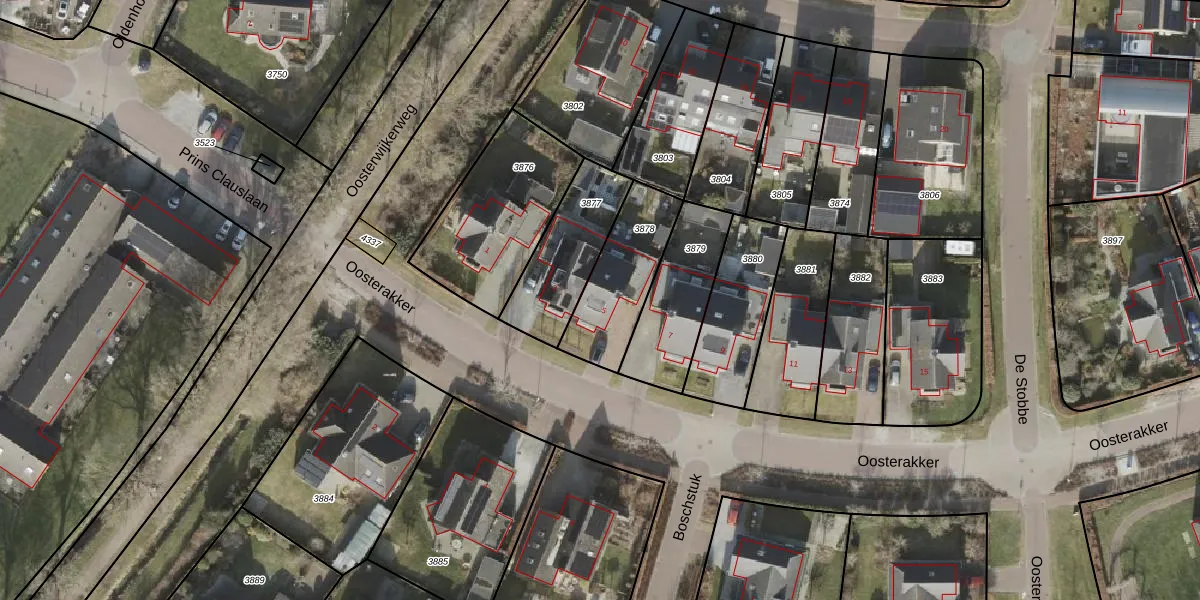 Oosterakker 5 is gelegen op kadastraal perceel WIJ03F3878. Deze kadastrale aanduiding is uniek en wordt gebruikt door het Kadaster om eigendomsrechten en andere zakelijke rechten vast te leggen. Het perceel maakt onderdeel uit van de kadastrale gemeente De Wijk.