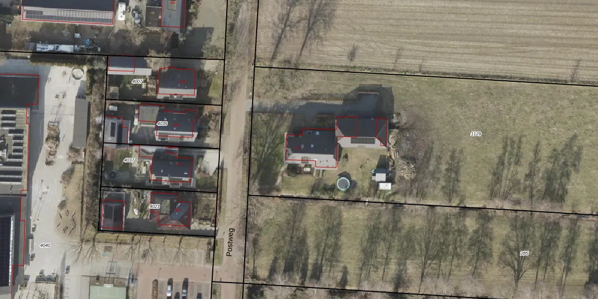 Postweg 10 is gelegen op kadastraal perceel WIJ03F1129. Deze kadastrale aanduiding is uniek en wordt gebruikt door het Kadaster om eigendomsrechten en andere zakelijke rechten vast te leggen. Het perceel maakt onderdeel uit van de kadastrale gemeente De Wijk.