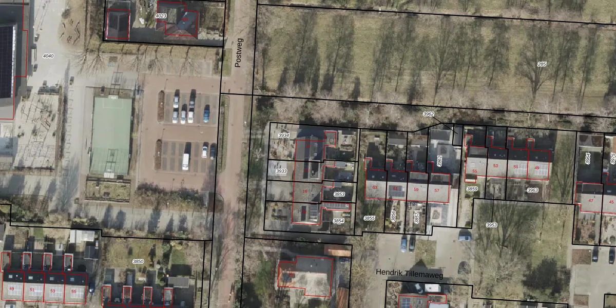 Het perceel waarop Postweg 12 staat heeft een oppervlakte van 340 m². Dit is een groot perceel. De perceeloppervlakte wordt geregistreerd door het Kadaster. Gedetailleerde informatie over de maten van dit perceel kunt u vinden in het rapport Kadastrale kaart met maatvoering van Postweg 12.