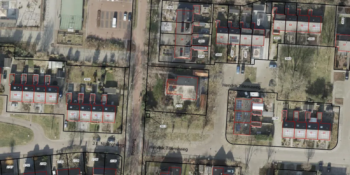 Gebruik de zoekbalk of klik op een perceel voor informatie over de adressen binnen dit perceel.