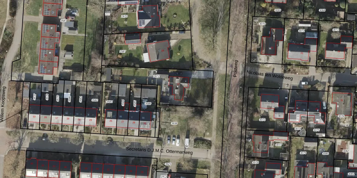 Gebruik de zoekbalk of klik op een perceel voor informatie over de adressen binnen dit perceel.