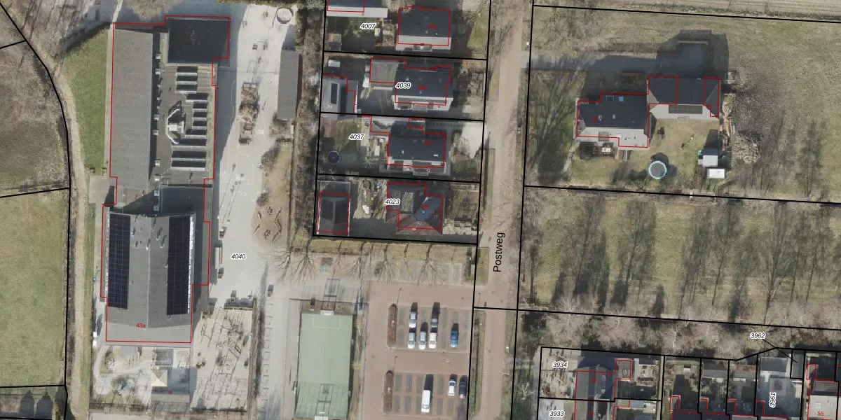 Postweg 43-b is gelegen op kadastraal perceel WIJ03F4023. Deze kadastrale aanduiding is uniek en wordt gebruikt door het Kadaster om eigendomsrechten en andere zakelijke rechten vast te leggen. Het perceel maakt onderdeel uit van de kadastrale gemeente De Wijk.