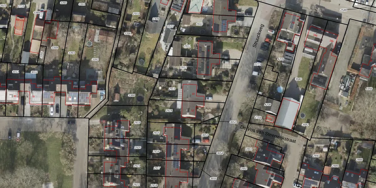 Struuckweg 10 is gelegen op kadastraal perceel WIJ03F2913. Deze kadastrale aanduiding is uniek en wordt gebruikt door het Kadaster om eigendomsrechten en andere zakelijke rechten vast te leggen. Het perceel maakt onderdeel uit van de kadastrale gemeente De Wijk.