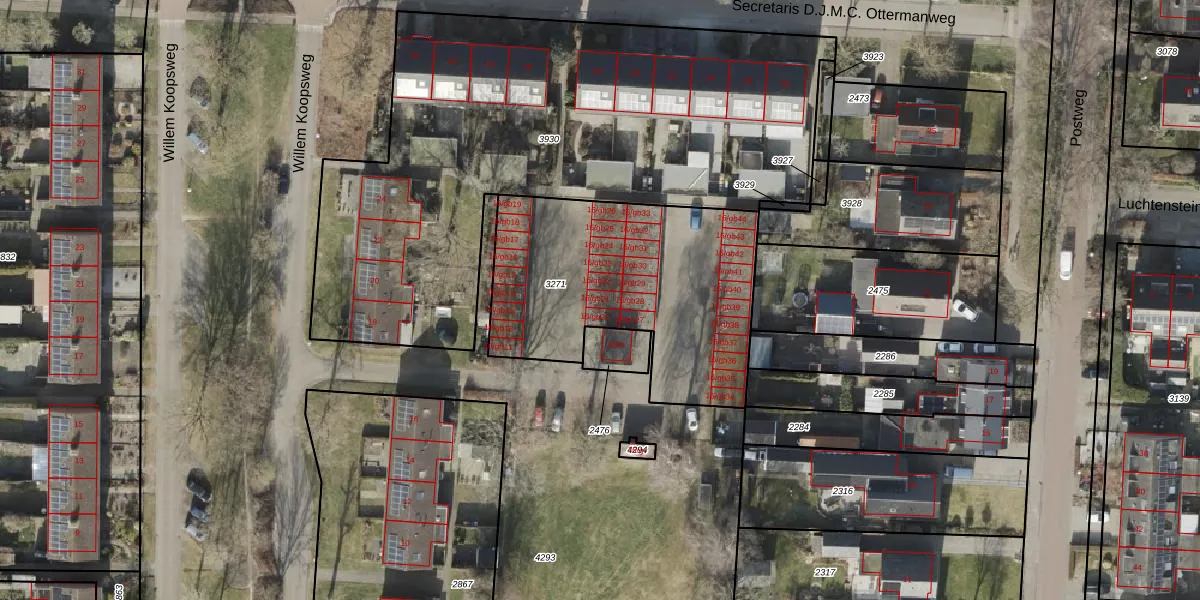 Willem Koopsweg 16-gb21 is gelegen op kadastraal perceel WIJ03F3271. Deze kadastrale aanduiding is uniek en wordt gebruikt door het Kadaster om eigendomsrechten en andere zakelijke rechten vast te leggen. Het perceel maakt onderdeel uit van de kadastrale gemeente De Wijk.