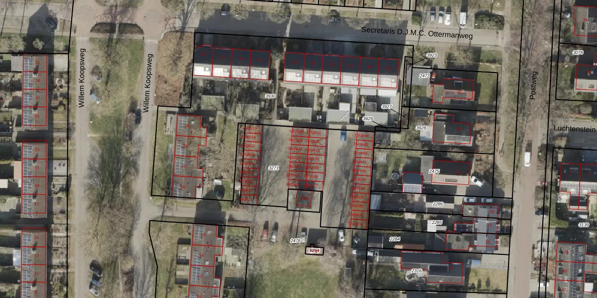 Willem Koopsweg 16-gb24 is gelegen op kadastraal perceel WIJ03F3271. Deze kadastrale aanduiding is uniek en wordt gebruikt door het Kadaster om eigendomsrechten en andere zakelijke rechten vast te leggen. Het perceel maakt onderdeel uit van de kadastrale gemeente De Wijk.