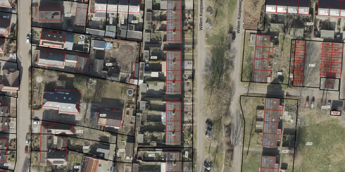 Het perceel waarop Willem Koopsweg 17 staat heeft een oppervlakte van 3456 m². Dit is een zeer groot perceel. De perceeloppervlakte wordt geregistreerd door het Kadaster. Gedetailleerde informatie over de maten van dit perceel kunt u vinden in het rapport Kadastrale kaart met maatvoering van Willem Koopsweg 17.
