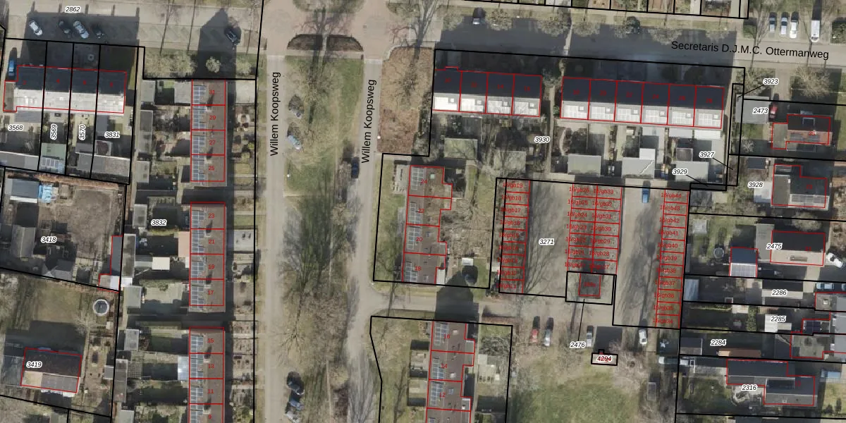 Het perceel waarop Willem Koopsweg 22 staat heeft een oppervlakte van 2855 m². Dit is een zeer groot perceel. De perceeloppervlakte wordt geregistreerd door het Kadaster. Gedetailleerde informatie over de maten van dit perceel kunt u vinden in het rapport Kadastrale kaart met maatvoering van Willem Koopsweg 22.