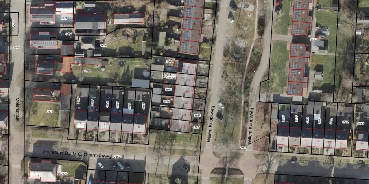 Willem Koopsweg 39 is gelegen op kadastraal perceel WIJ03F3563. Deze kadastrale aanduiding is uniek en wordt gebruikt door het Kadaster om eigendomsrechten en andere zakelijke rechten vast te leggen. Het perceel maakt onderdeel uit van de kadastrale gemeente De Wijk.