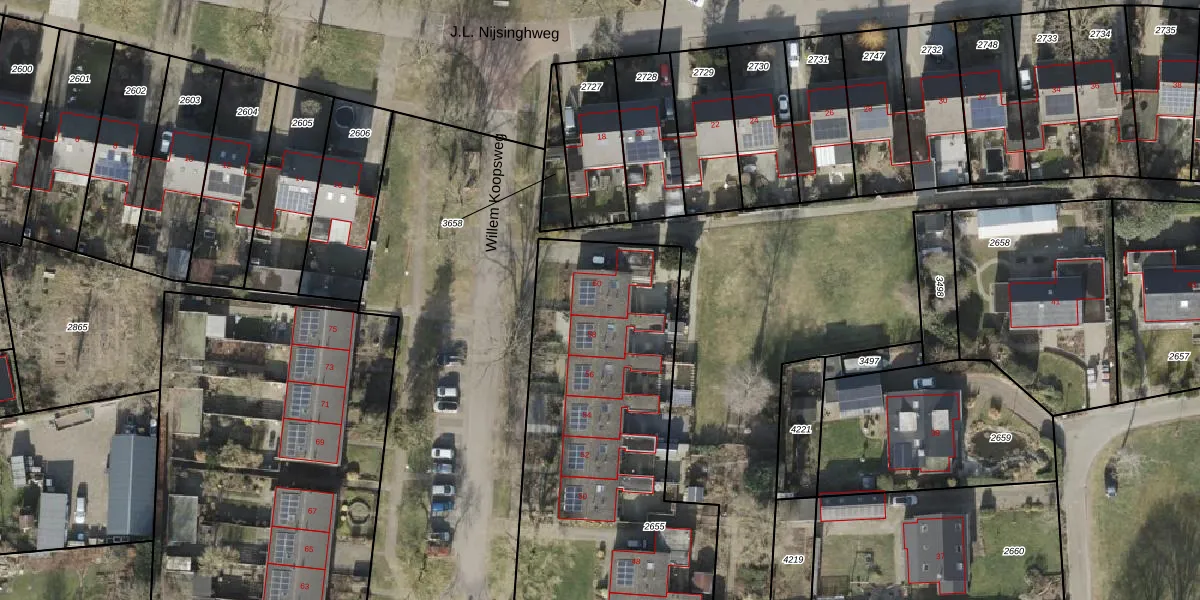 Willem Koopsweg 60 is gelegen op kadastraal perceel WIJ03F2655. Deze kadastrale aanduiding is uniek en wordt gebruikt door het Kadaster om eigendomsrechten en andere zakelijke rechten vast te leggen. Het perceel maakt onderdeel uit van de kadastrale gemeente De Wijk.