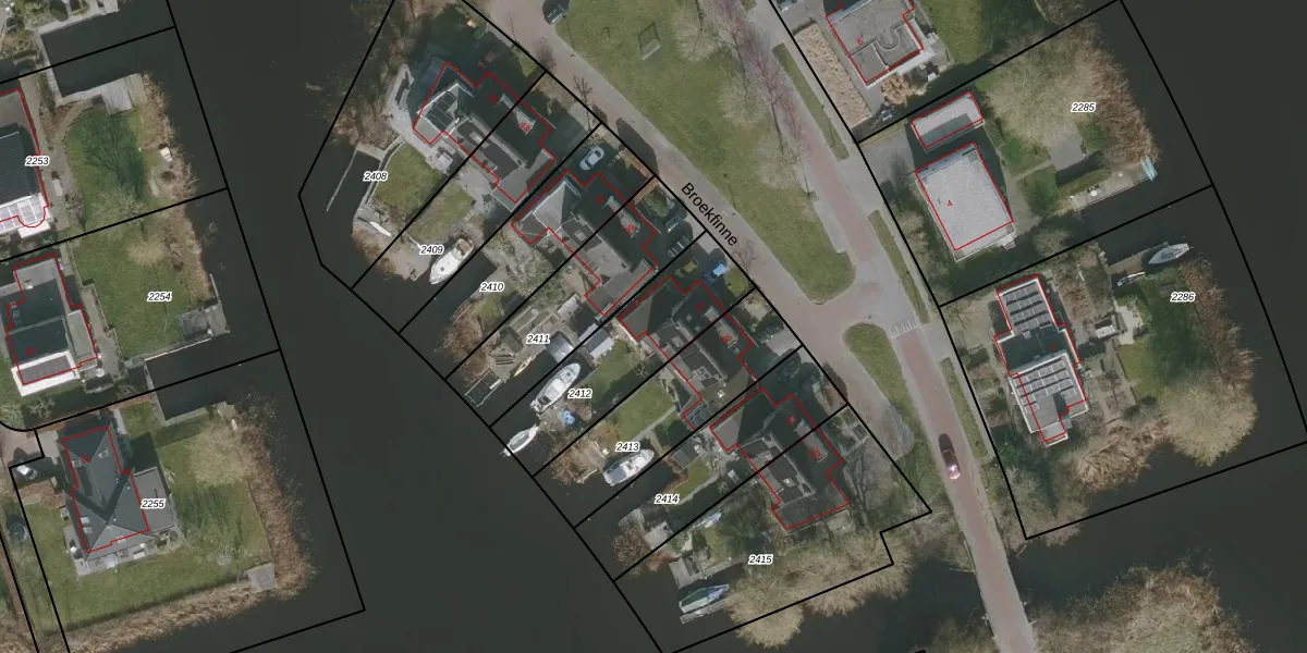 Broekfinne 37 is gelegen op kadastraal perceel BBG03F2412. Deze kadastrale aanduiding is uniek en wordt gebruikt door het Kadaster om eigendomsrechten en andere zakelijke rechten vast te leggen. Het perceel maakt onderdeel uit van de kadastrale gemeente Boornbergum.