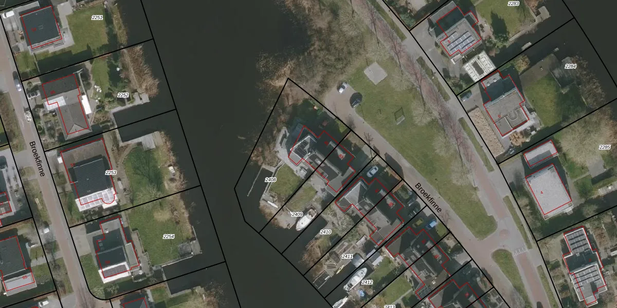 Broekfinne 45 is gelegen op kadastraal perceel BBG03F2408. Deze kadastrale aanduiding is uniek en wordt gebruikt door het Kadaster om eigendomsrechten en andere zakelijke rechten vast te leggen. Het perceel maakt onderdeel uit van de kadastrale gemeente Boornbergum.