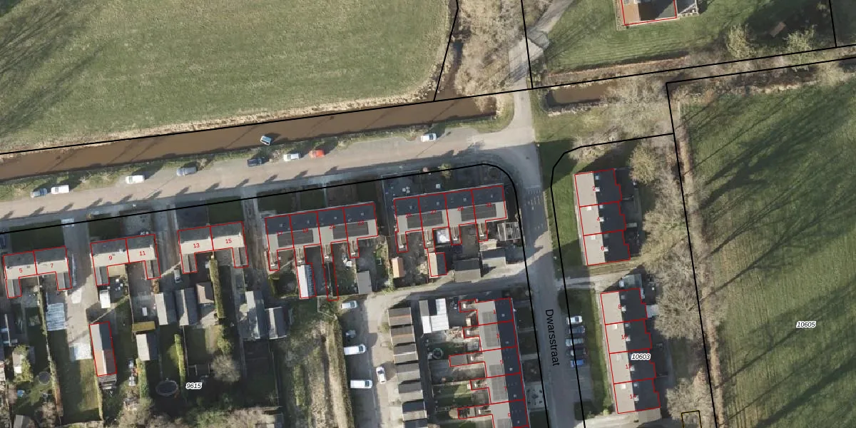 Het adres ligt op het perceel MRM01-C-9615, dat zich in de kadastrale gemeente Marum bevindt. De oppervlakte van het perceel is 1,3 ha. Dat is groter dan gemiddeld in Marum, waar de gemiddelde perceeloppervlakte op 8033,99 m² ligt. Het kleinste perceel in de kadastrale gemeente is 0 m² groot. De grootste perceeloppervlakte is 38,8 ha. Er zijn 37 adressen aanwezig op het perceel. In de Basisregistratie Kadaster (BRK) werden de grenzen van het perceel geregistreerd op 01-10-2002.