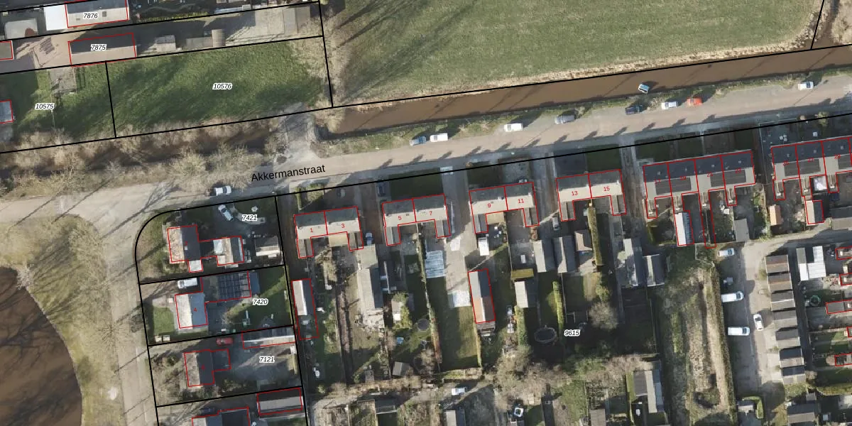 Akkermanstraat 7 is gelegen op kadastraal perceel MRM01C9615. Deze kadastrale aanduiding is uniek en wordt gebruikt door het Kadaster om eigendomsrechten en andere zakelijke rechten vast te leggen. Het perceel maakt onderdeel uit van de kadastrale gemeente Marum.