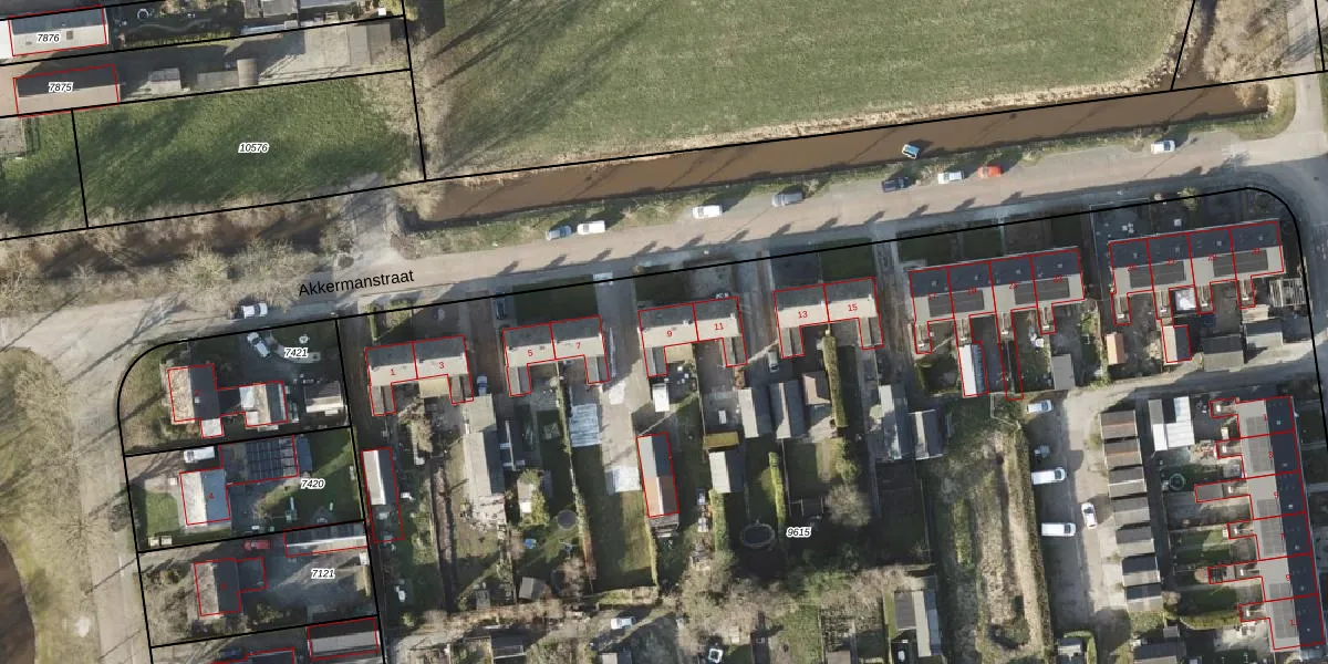 Het perceel waarop Akkermanstraat 9 staat heeft een oppervlakte van 1,3 ha. Dit is een zeer groot perceel. De perceeloppervlakte wordt geregistreerd door het Kadaster. Gedetailleerde informatie over de maten van dit perceel kunt u vinden in het rapport Kadastrale kaart met maatvoering van Akkermanstraat 9.