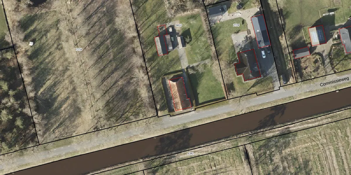 Het perceel waarop Commissieweg 7 staat heeft een oppervlakte van 4765 m². Dit is een zeer groot perceel. De perceeloppervlakte wordt geregistreerd door het Kadaster. Gedetailleerde informatie over de maten van dit perceel kunt u vinden in het rapport Kadastrale kaart met maatvoering van Commissieweg 7.