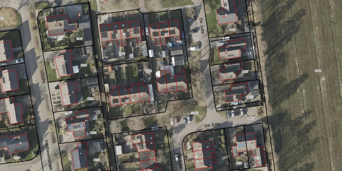 De Jutte 26 is gelegen op kadastraal perceel MRM01C8934. Deze kadastrale aanduiding is uniek en wordt gebruikt door het Kadaster om eigendomsrechten en andere zakelijke rechten vast te leggen. Het perceel maakt onderdeel uit van de kadastrale gemeente Marum.