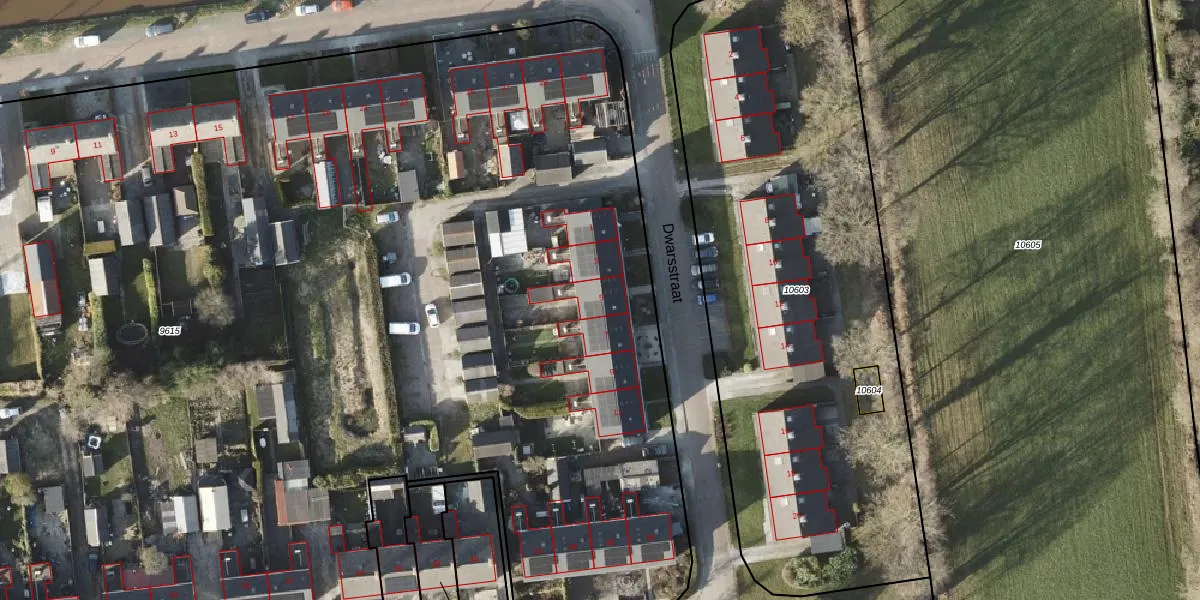 Het perceel waarop Dwarsstraat 5 staat heeft een oppervlakte van 1,3 ha. Dit is een zeer groot perceel. De perceeloppervlakte wordt geregistreerd door het Kadaster. Gedetailleerde informatie over de maten van dit perceel kunt u vinden in het rapport Kadastrale kaart met maatvoering van Dwarsstraat 5.