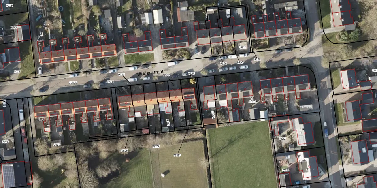 Het perceel waarop Middenstraat 25 staat heeft een oppervlakte van 199 m². Dit is een middelgroot perceel. De perceeloppervlakte wordt geregistreerd door het Kadaster. Gedetailleerde informatie over de maten van dit perceel kunt u vinden in het rapport Kadastrale kaart met maatvoering van Middenstraat 25.