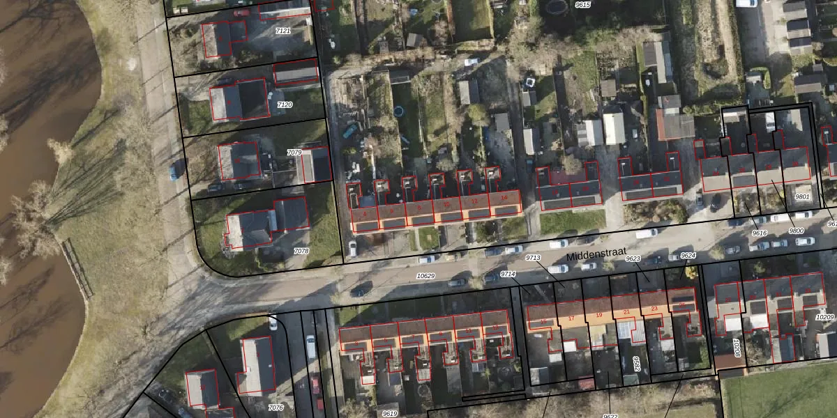 Middenstraat 8 is gelegen op kadastraal perceel MRM01C9615. Deze kadastrale aanduiding is uniek en wordt gebruikt door het Kadaster om eigendomsrechten en andere zakelijke rechten vast te leggen. Het perceel maakt onderdeel uit van de kadastrale gemeente Marum.