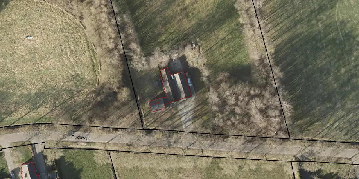 Het perceel waarop Oudewijk 4-A staat heeft een oppervlakte van 1,5 ha. Dit is een zeer groot perceel. De perceeloppervlakte wordt geregistreerd door het Kadaster. Gedetailleerde informatie over de maten van dit perceel kunt u vinden in het rapport Kadastrale kaart met maatvoering van Oudewijk 4-A.