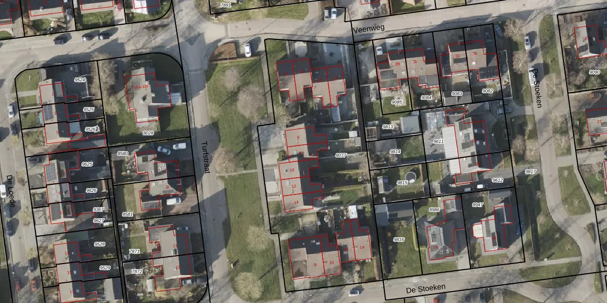 Het perceel waarop Turfstraat 8 staat heeft een oppervlakte van 2620 m². Dit is een zeer groot perceel. De perceeloppervlakte wordt geregistreerd door het Kadaster. Gedetailleerde informatie over de maten van dit perceel kunt u vinden in het rapport Kadastrale kaart met maatvoering van Turfstraat 8.