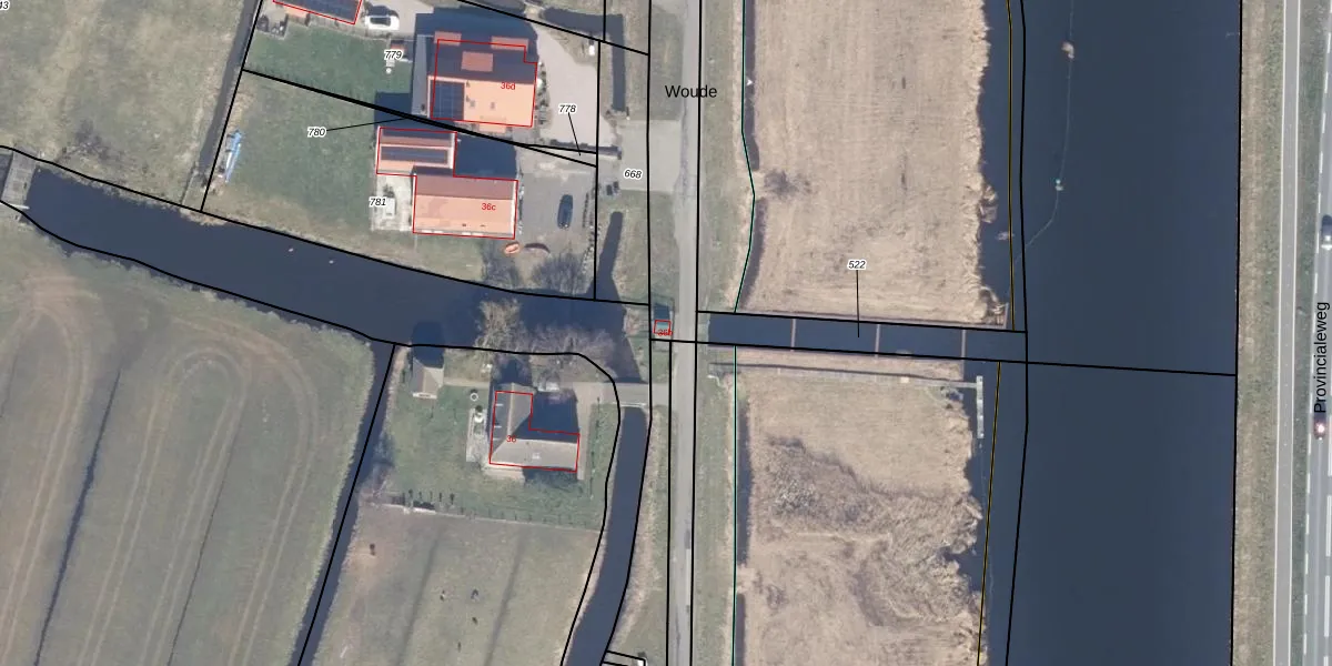 Het perceel waarop Woude 36-b staat heeft een oppervlakte van 2960 m². Dit is een zeer groot perceel. De perceeloppervlakte wordt geregistreerd door het Kadaster. Gedetailleerde informatie over de maten van dit perceel kunt u vinden in het rapport Kadastrale kaart met maatvoering van Woude 36-b.