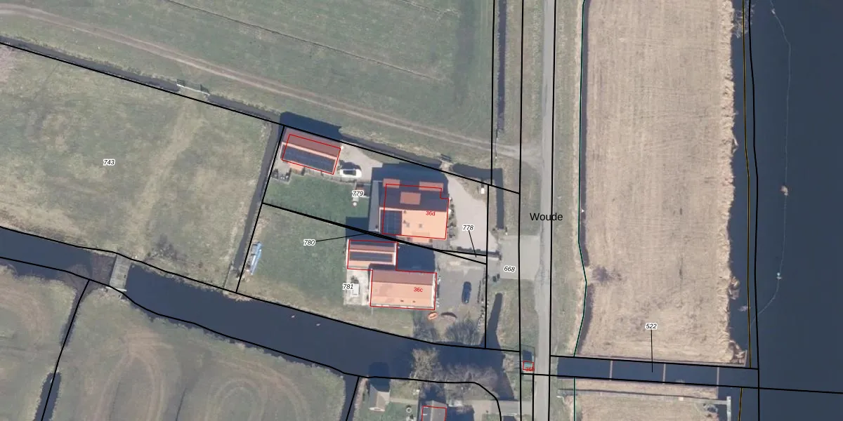 Het perceel waarop Woude 36-d staat heeft een oppervlakte van 976 m². Dit is een groot perceel. De perceeloppervlakte wordt geregistreerd door het Kadaster. Gedetailleerde informatie over de maten van dit perceel kunt u vinden in het rapport Kadastrale kaart met maatvoering van Woude 36-d.