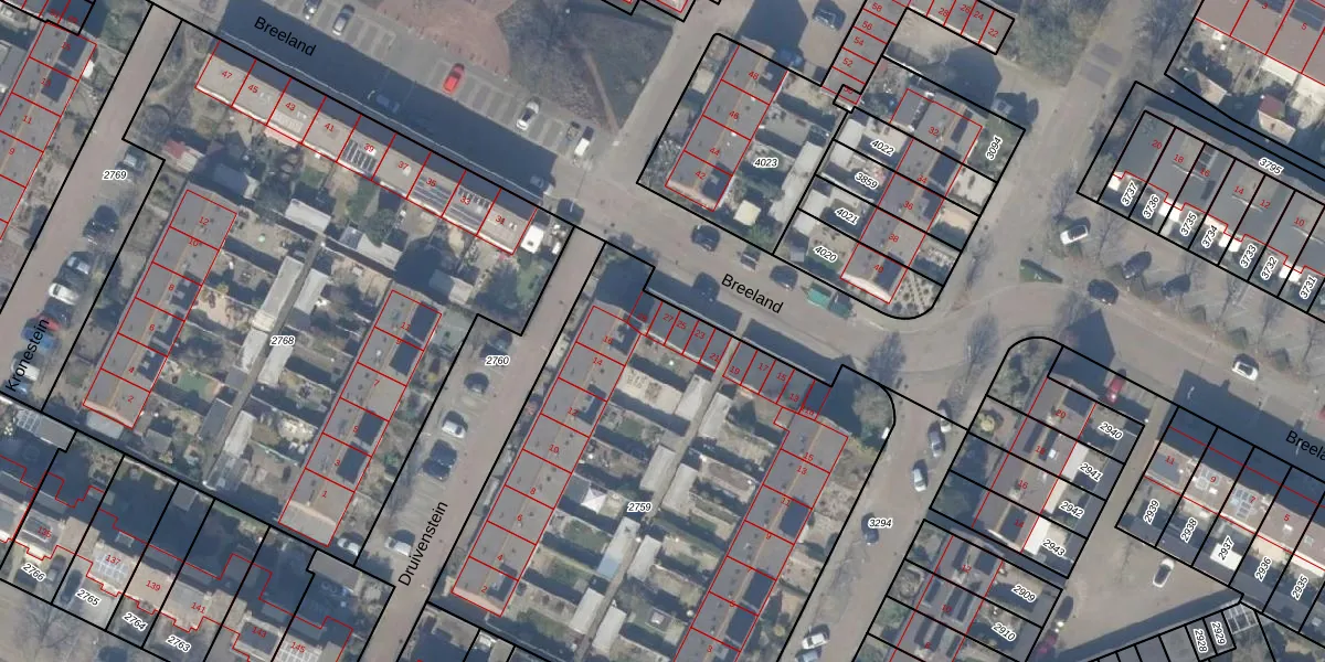 Het perceel waarop Breeland 27 staat heeft een oppervlakte van 2969 m². Dit is een zeer groot perceel. De perceeloppervlakte wordt geregistreerd door het Kadaster. Gedetailleerde informatie over de maten van dit perceel kunt u vinden in het rapport Kadastrale kaart met maatvoering van Breeland 27.