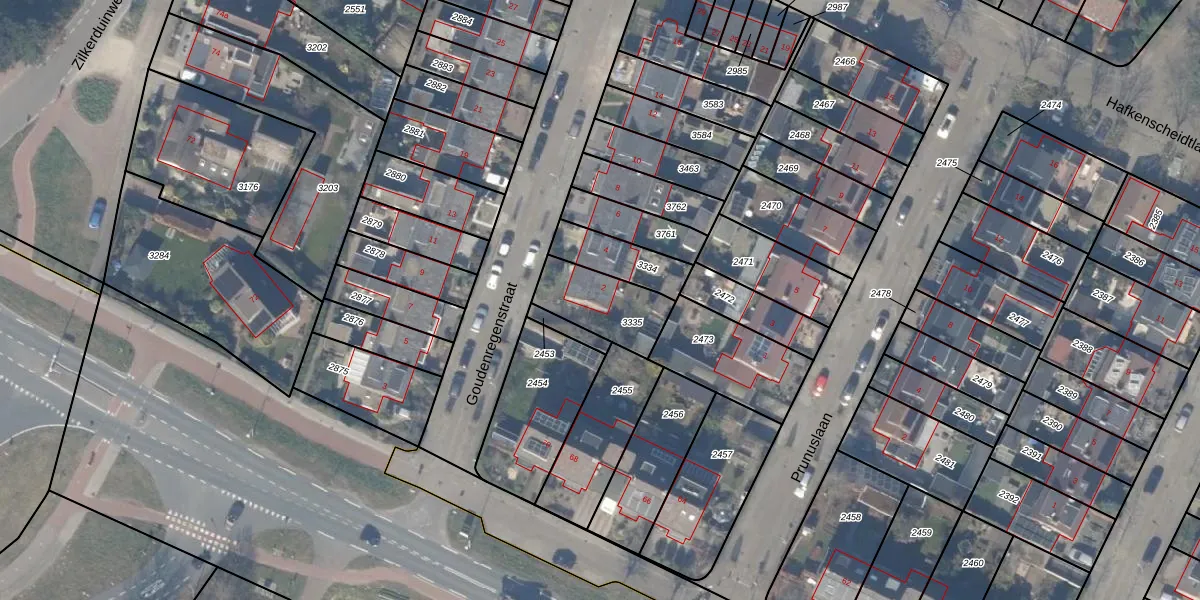 Gebruik de zoekbalk of klik op een perceel voor informatie over de adressen binnen dit perceel.