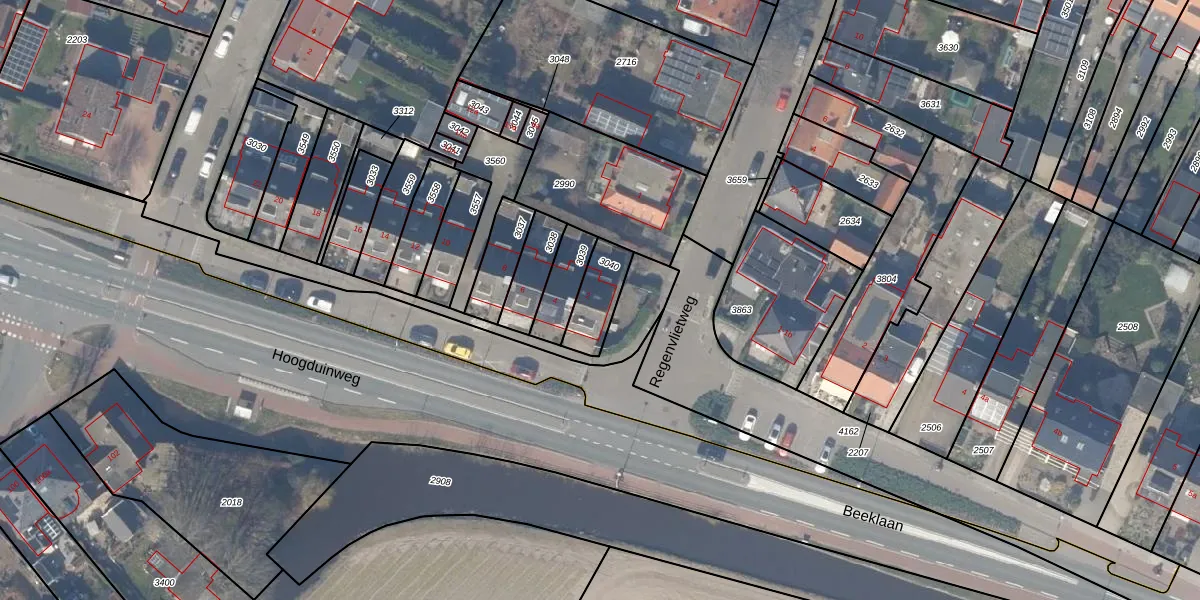 Gebruik de zoekbalk of klik op een perceel voor informatie over de adressen binnen dit perceel.